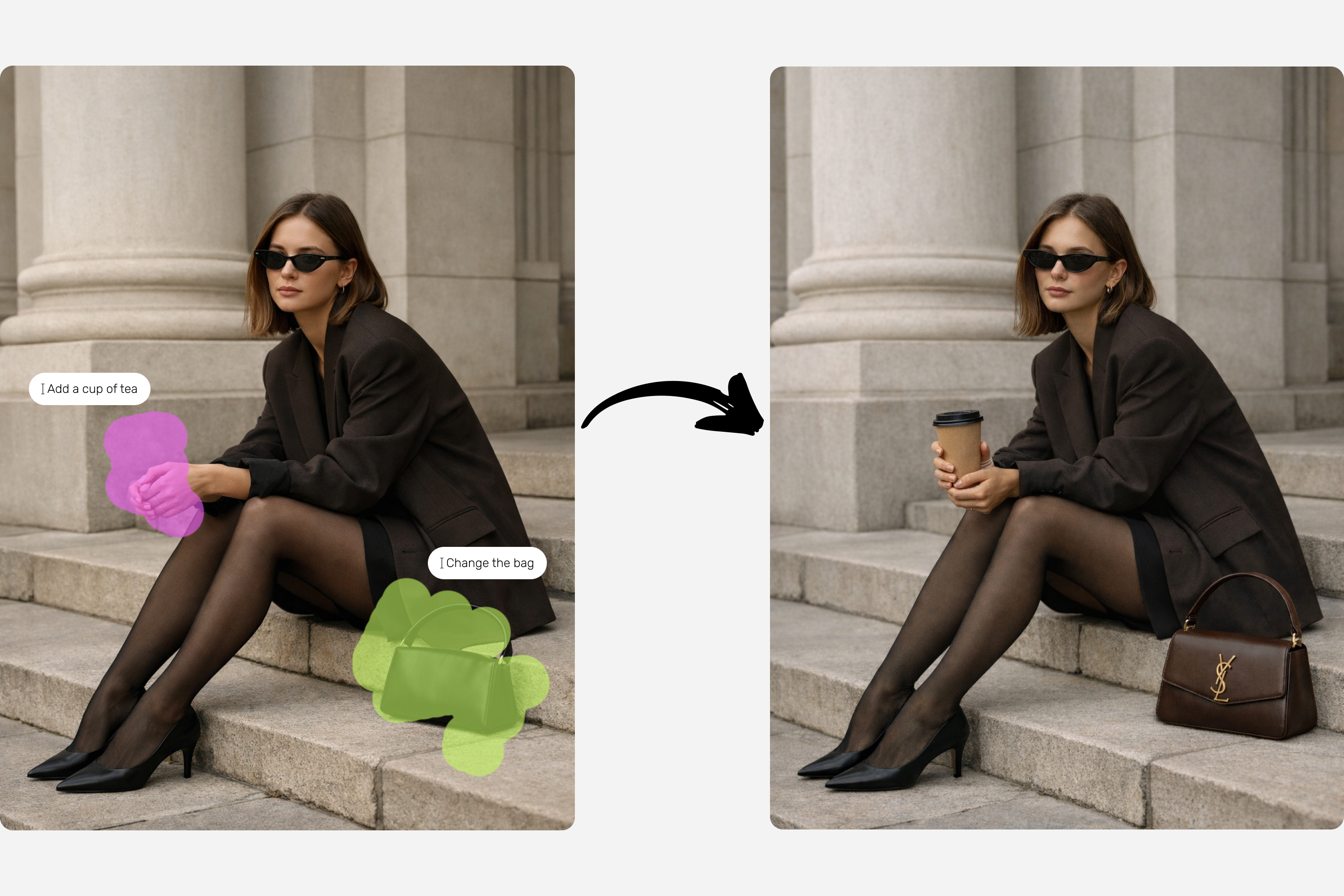 Create contentBrush over the areas you want to change, describe what should happen there, and AI updates only those regions — masked inpainting with a simple paint tool, no full re-shoot.